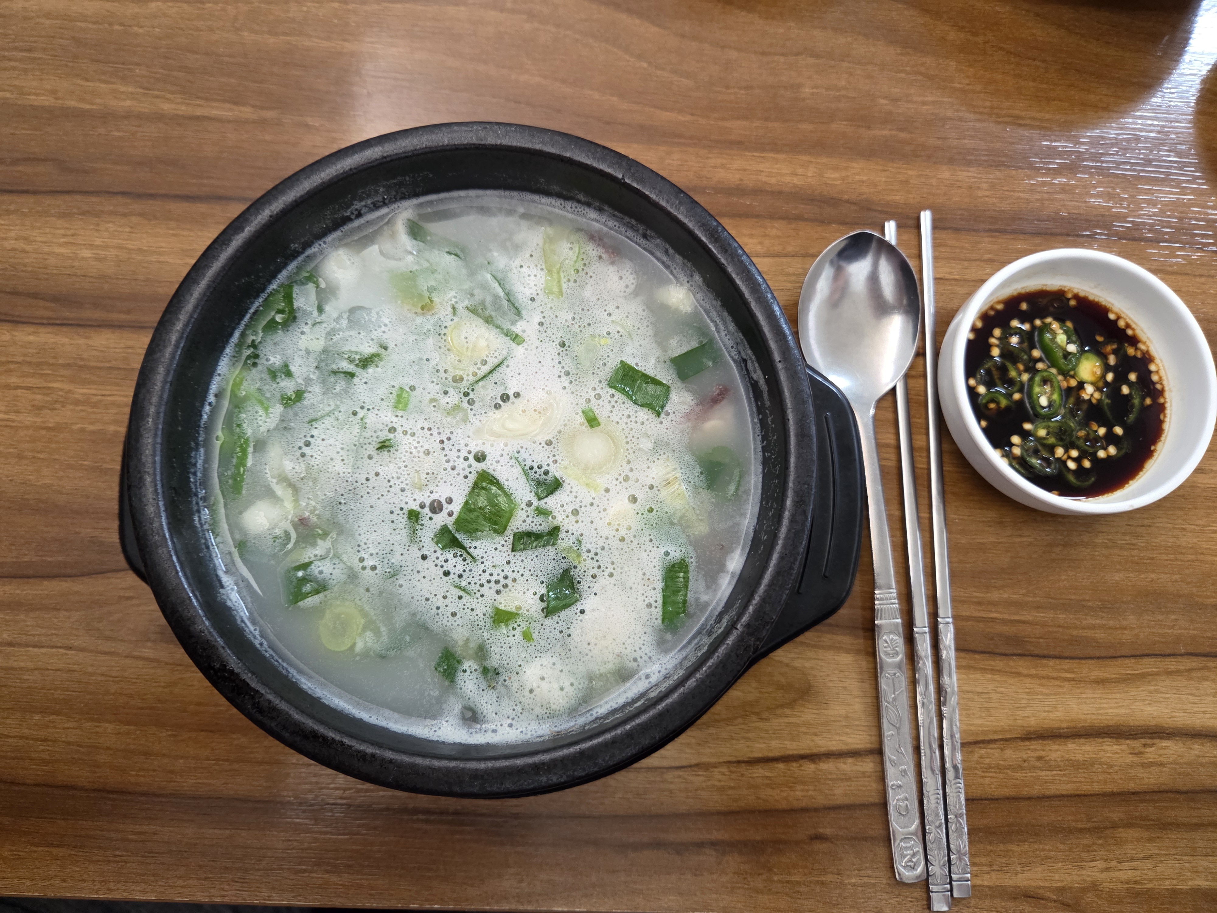 곰탕을 받아들고 수저를 저수어 볼쯤 남자 사장은 밖으로 나갔다.