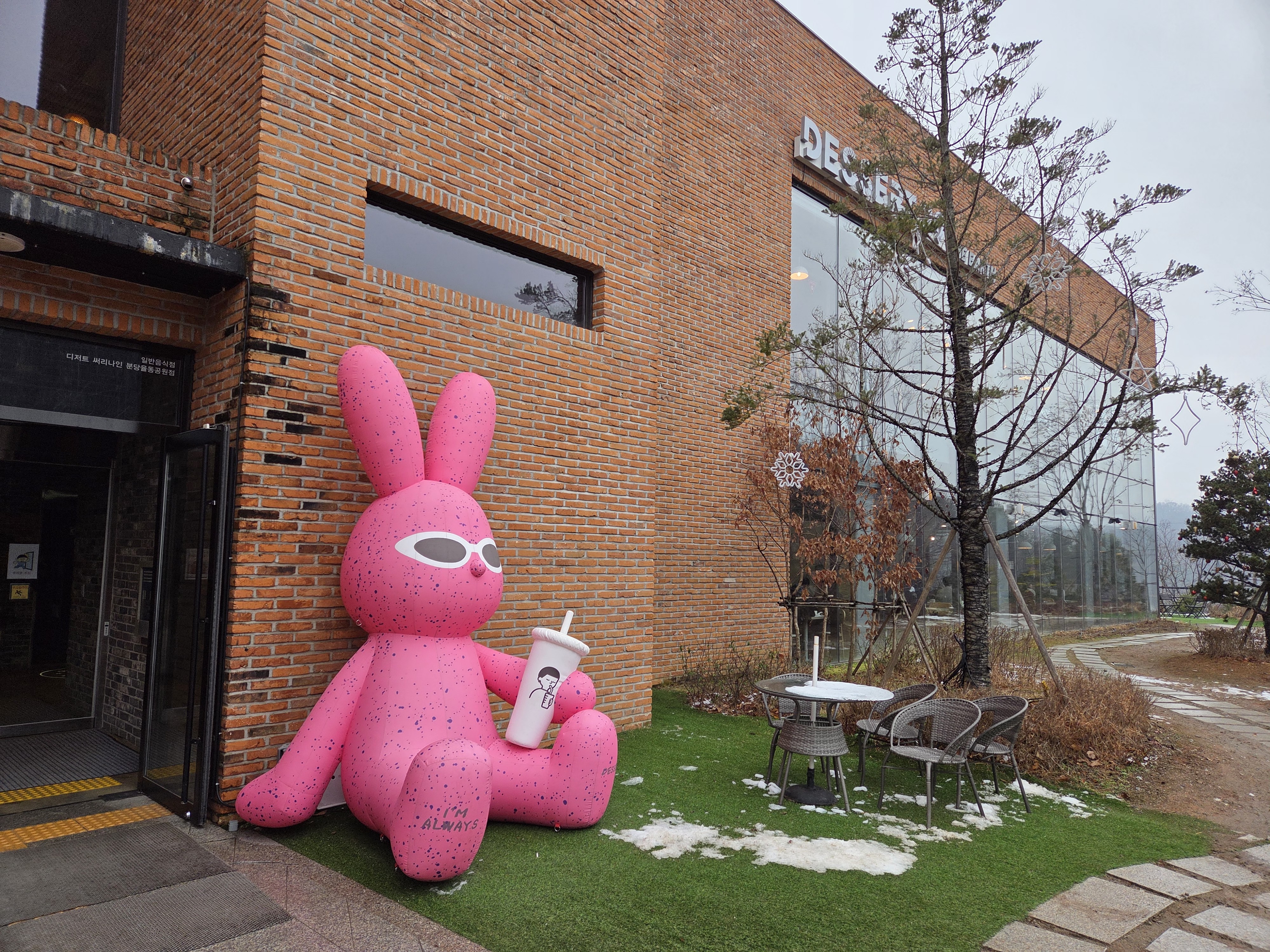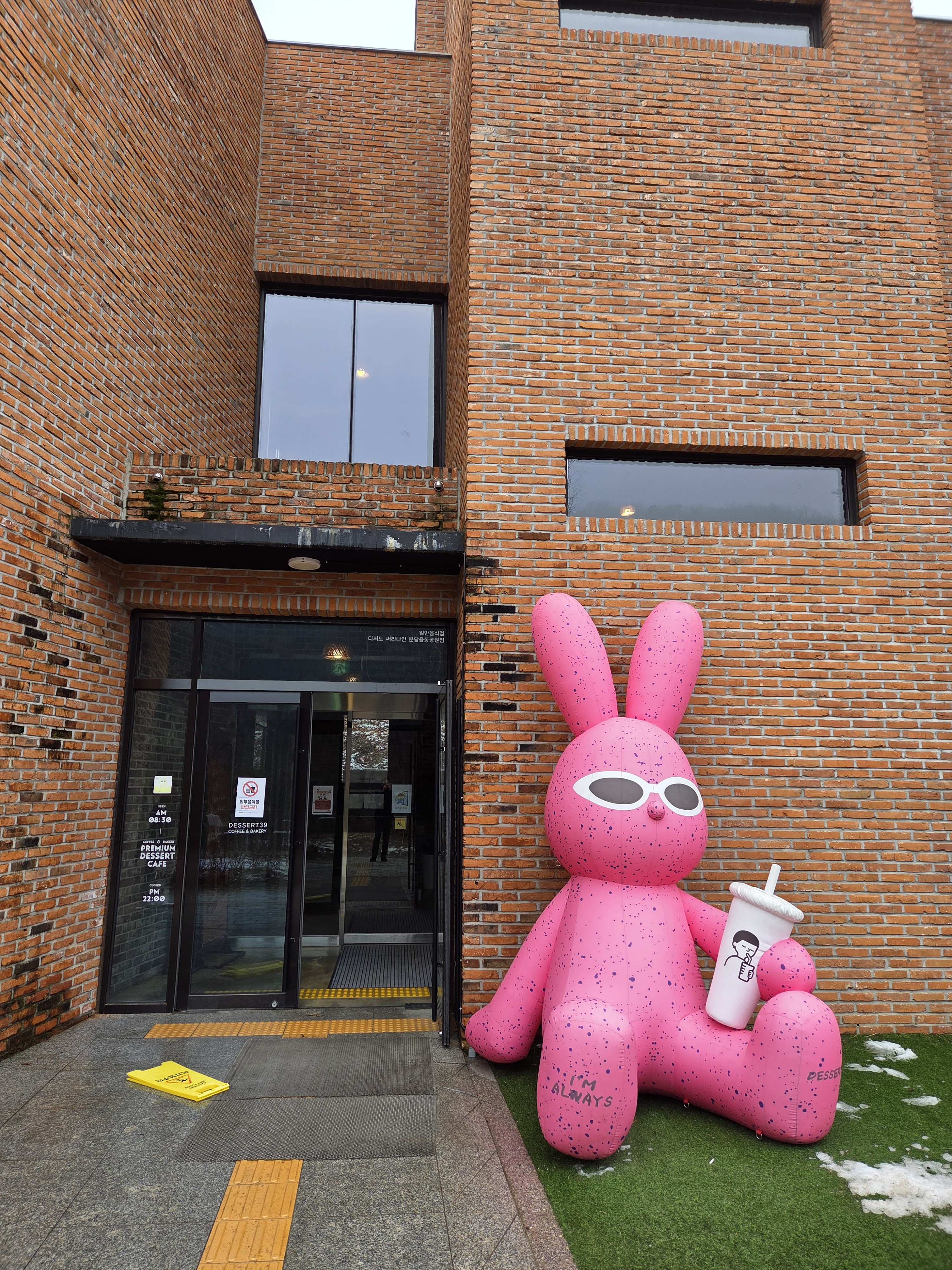 치장벽돌과 조화를 이루며 눈에 확 뛴다.안경의 흰색이 쟂빛이 토끼의 생면을 살리고 있는듯 싶다.