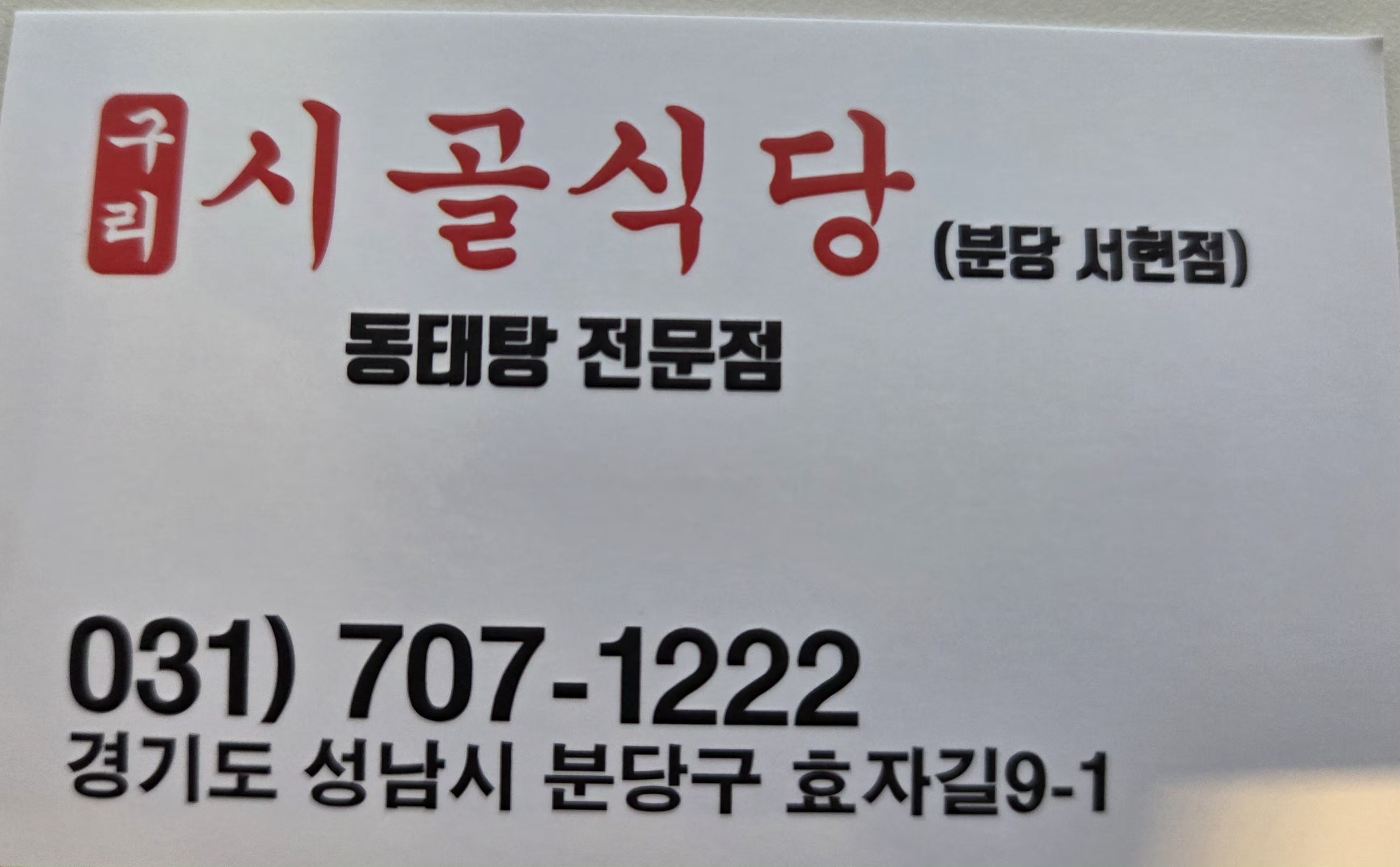 오늘 점심은 성남시 분당구 서현동에 있는 시골식당 동태탕 전문점을 찾아서 웨이팅 주문시 얼큰한 맛이라고 써 놓았죠.
