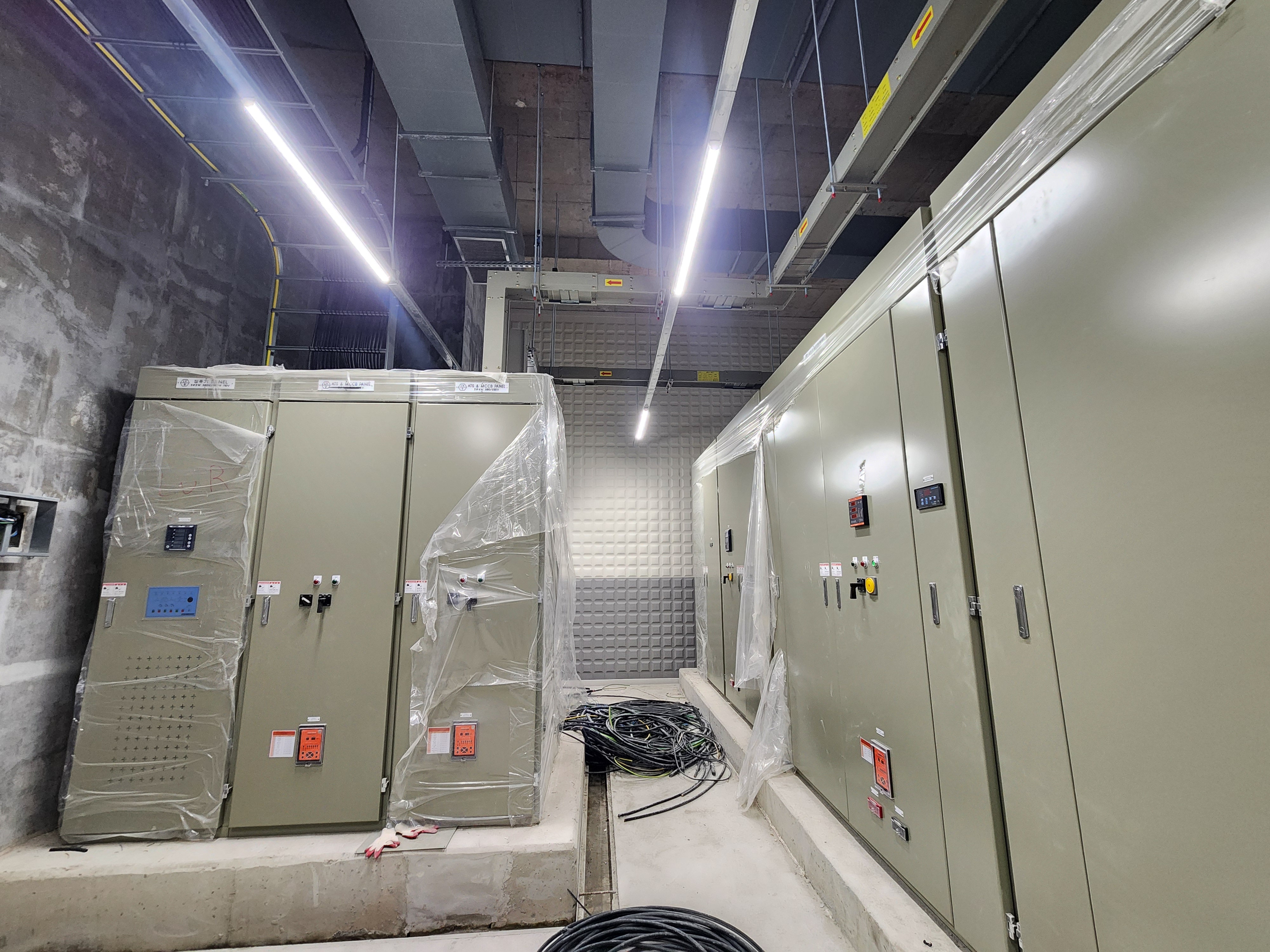 지하 4층 기계실 + 배전반실 + 저수탱크 실 벽체배수판 시공 완료후 전경입니다.