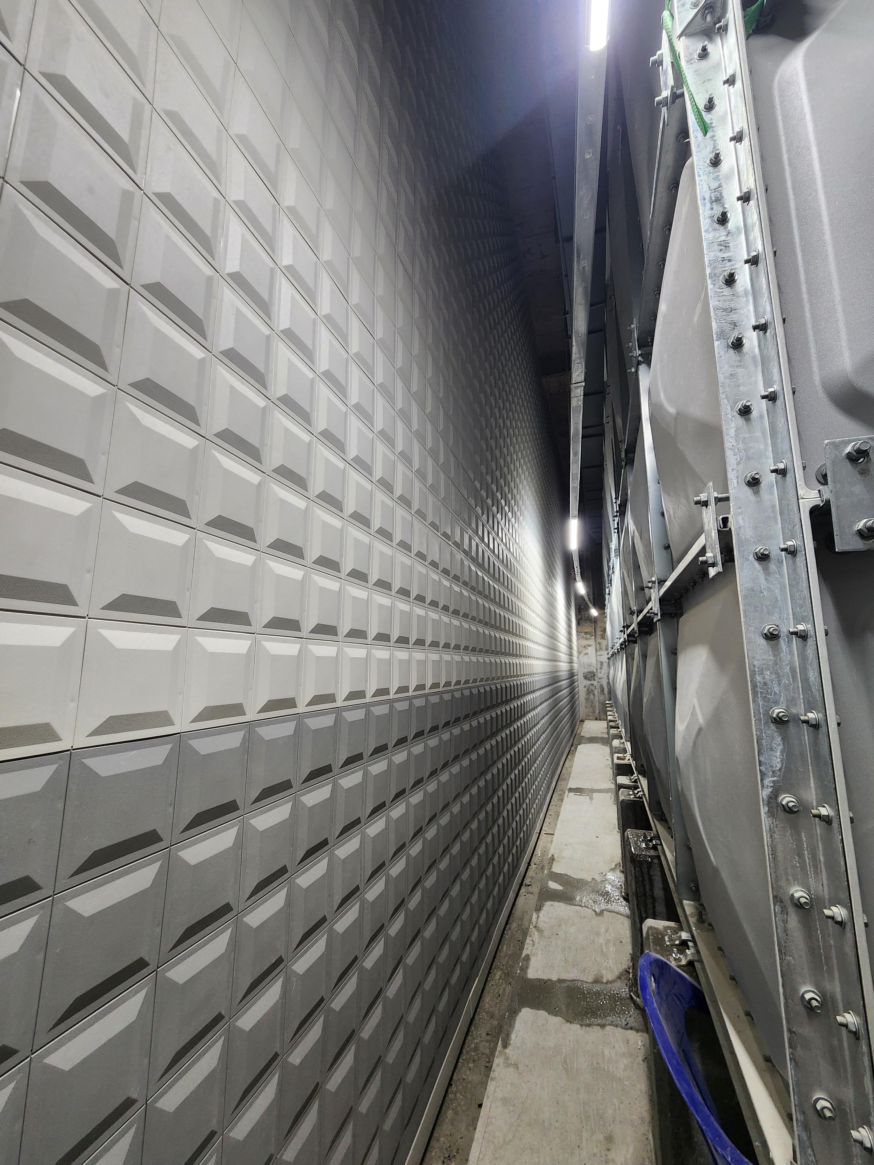 벽체배수판 시공 할 높이가 5~7m가 넘은 구간들을 올려다 보고 있노라면 지금 내가 거대한 절벽을 바라보고 있는 것만 같다.거기다가 배전만,물탱크,기계적인 펌프들을 연결한 배관들,전성관 트레이들이 여기저기를 가로지르고 있다.