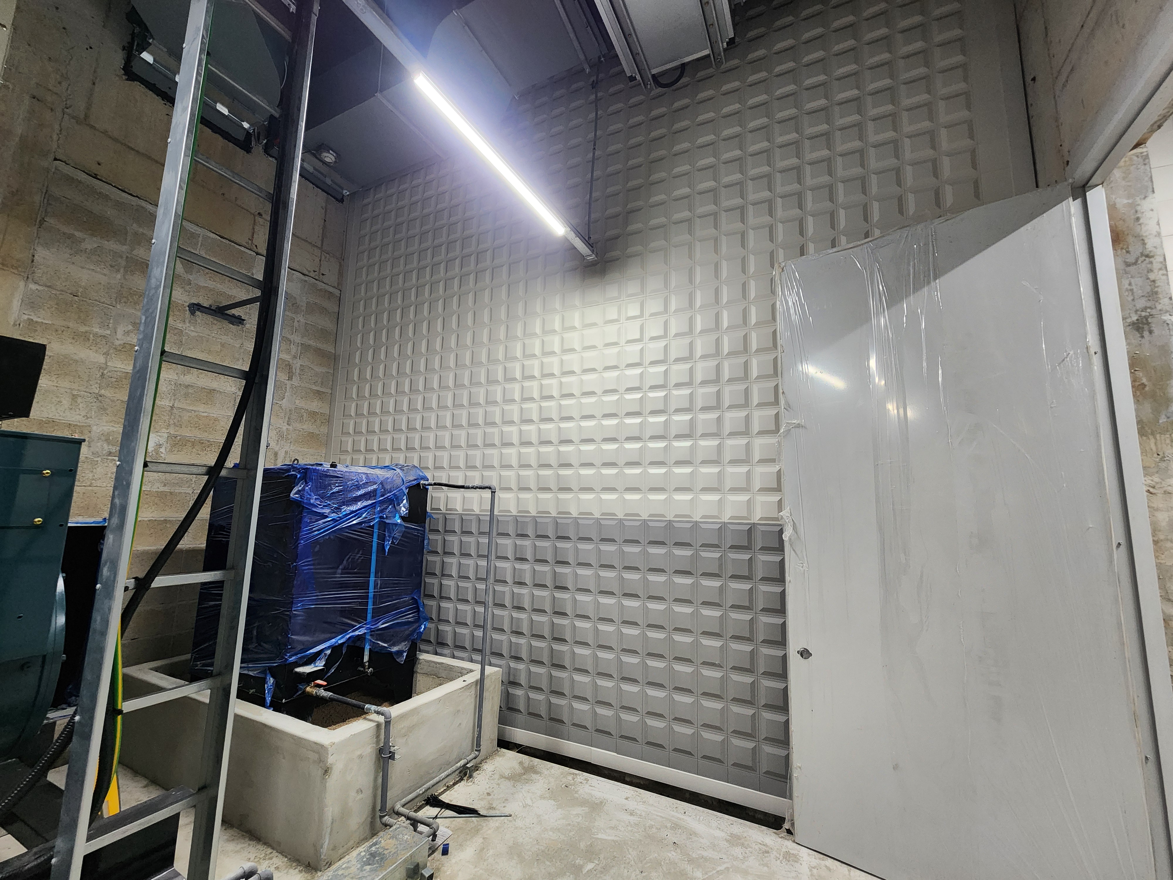 벽체배수판 시공전 뿜칠이 끝나야 했고,천장 뿜칠이 없다던 곳에 다시 뿜칠을 한다고 해서(창고 및, AD,PD) 집수정을 그들은 토요일 내내 벽면 보양만 하고 있었다.