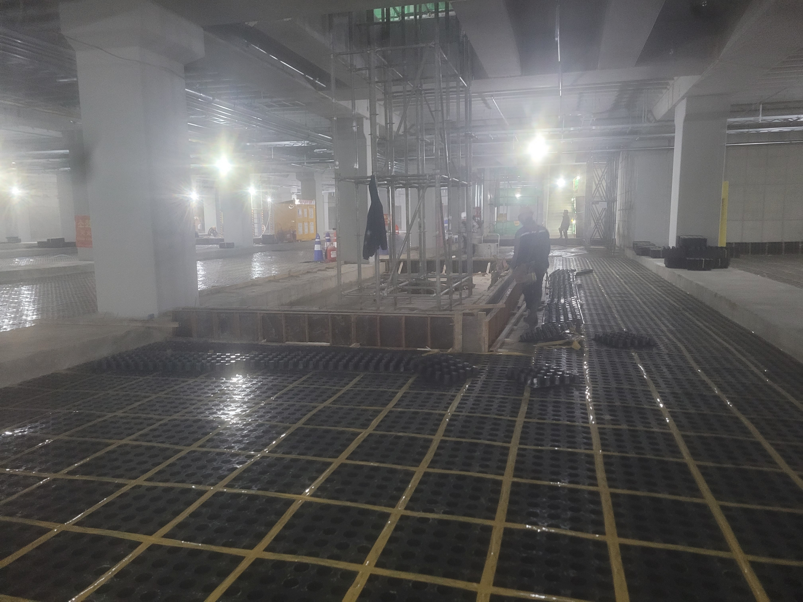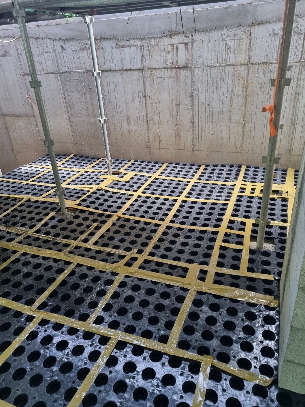 이곳은 바닥배수판 깔기전 한달의 시간이 있었는데,외벽 트렌치 방수턱을 만들때,패드 기초를 만들었어야지 바닥배수판 시공을 하고 있는데는 와서 걷어내고,이제와서 형들을 설치하고 있습니다.