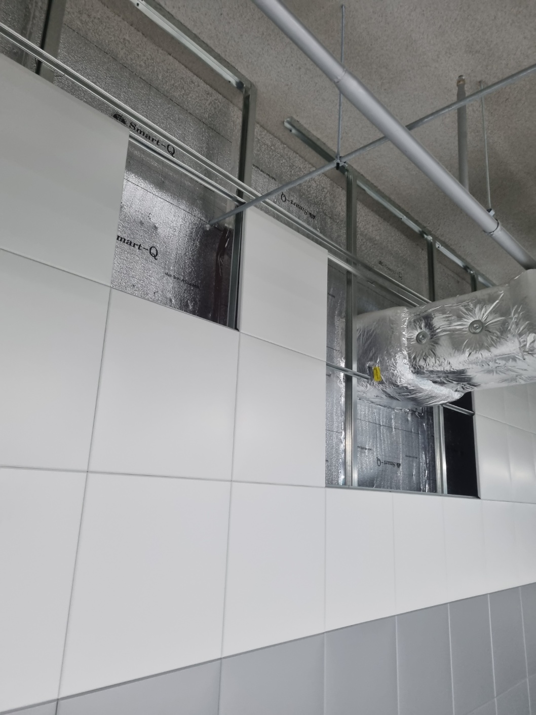 벽체 칼라강판 배수판 설치중 전경입니다.