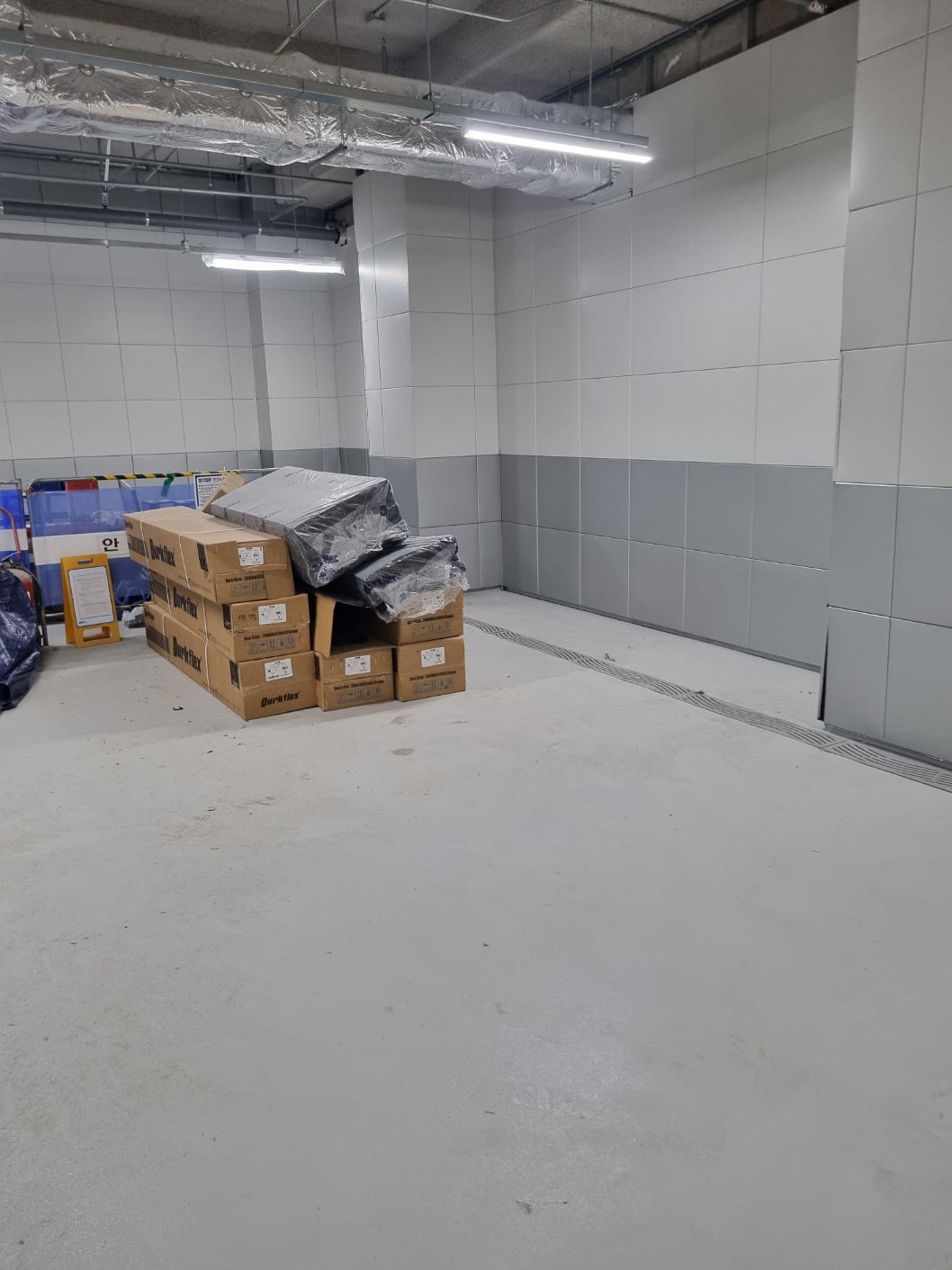자재가 부족하여 별도로 자재를 받았는데,갑자기 지하1층에서 턱을 만들어 놓아서 이 자재를 인력거로 지하4층까지 날라야 했습니다.